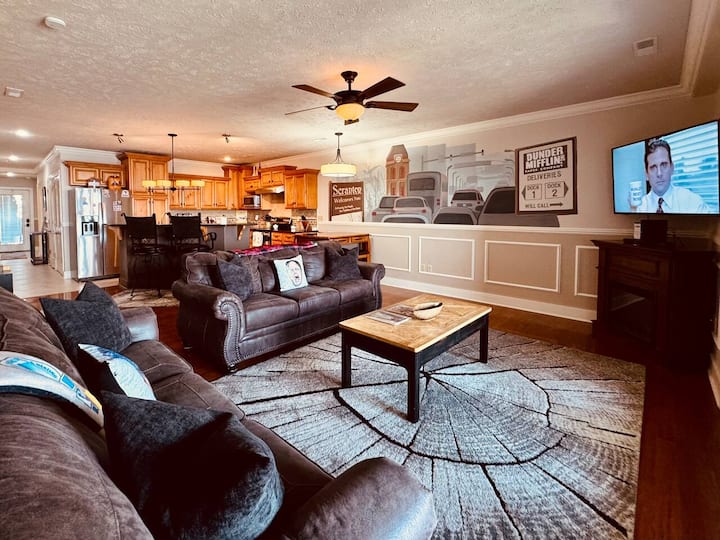เข้าพักที่ Dunder Mifflin Branson — ที่พักสุดพิเศษในธีม *Office*! คอนโดแบบวอล์คอิน 1 ห้องนอน/1 ห้องน้ำแห่งนี้เต็มไปด้วยการตกแต่งที่สนุกสนาน บรรยากาศแบบสแครนตัน วิวทะเลสาบ และความสะดวกสบายเหมือนอยู่บ้าน เหมาะสำหรับแฟน คู่รัก หรือครอบครัว มีโซฟาแบบดึงออกได้ สมาร์ทล็อค Wi-Fi ความเร็วสูง และลิฟต์ เดินไปทะเลสาบ ขับรถ 4 นาทีไปซิลเวอร์ดอลลาร์ซิตี้ หรือชิลกับการซีซั่นรีรันของเควิน ไม่ต้องใช้เงินของ Schrute