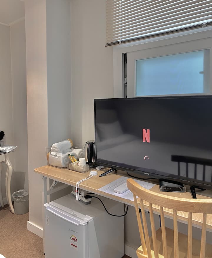 มีเครื่องซักผ้าและเครื่องอบผ้า (ค่าใช้จ่าย 8,000 วอน/เวลาใช้งาน 7:00 น.-10:00 น.)