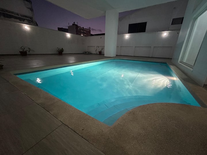 นี่เป็นหนึ่งในที่พักไม่กี่แห่งของย่านนี้ที่มีสระว่ายน้ำ