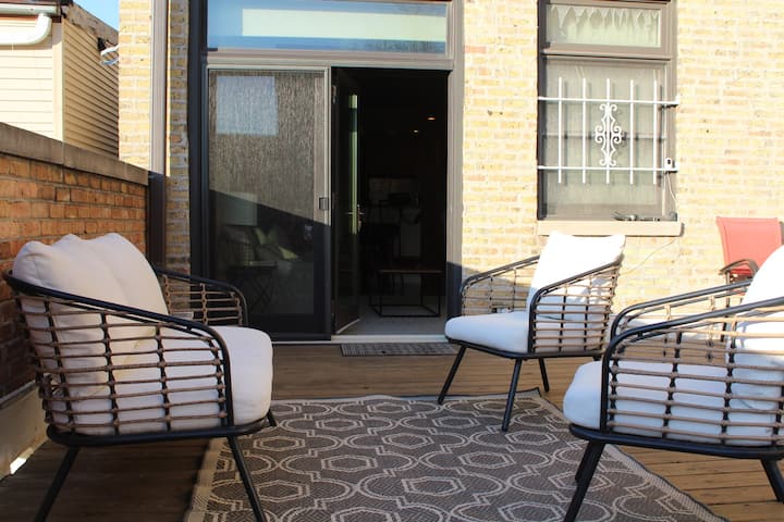 - บ้านพักตากอากาศที่มีที่นั่งกลางแจ้งใน ชิคาโก