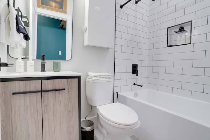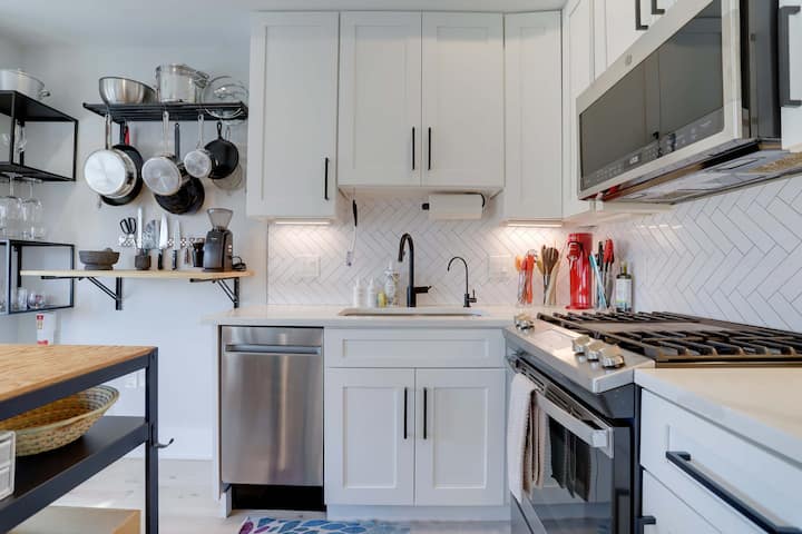 สัมผัสดีซีแบบคนท้องถิ่น! พักผ่อนในที่พักที่ได้รับการออกแบบอย่างมีชีวิตชีวาในย่าน LeDroit Park/Shaw รัฐนอร์ธแคโรไลนาดี .ซี. บ้านหลังนี้เป็นคอนโดขนาด 720 ตารางฟุตมี 1 ห้องนอน 2 ห้องน้ำพื้นที่นั่งเล่นแบบยืดหยุ่นและมีเครื่องซักผ้า/เครื่องอบผ้าในห้องพัก ห้องนอนมีเตียงควีนไซส์ซึ่งสามารถนอนได้ 2 คนอย่างสบายๆ นั่งลงบนโซฟาแบบดึงออกได้ในพื้นที่นั่งเล่นที่ยืดหยุ่นและดูรายการโปรดของคุณบนโปรเจคเตอร์หรือทำงานให้เสร็จที่โต๊ะทำงาน ย่านนี้เป็นจักรยานและเป็นมิตรกับการเดินแม้ว่าจะเป็นสวนสาธารณะ