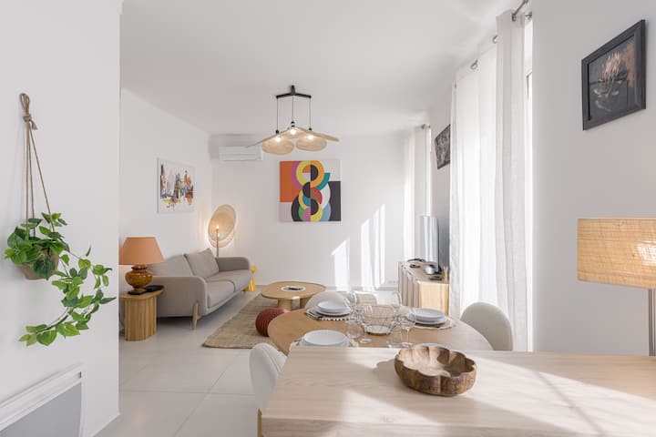 ห้องพัก 3 ห้องที่สว่างสดใสขนาด 60 ตารางเมตรแห่งนี้ตั้งอยู่ห่างจาก Palais des Festivals et des Plages โดยใช้เวลาเดิน 10 นาทีและห่างจากสถานีรถไฟโดยใช้เวลาเดิน 8 นาที