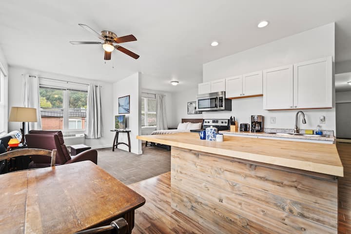 1 ห้องนอนใกล้สโนว์ชู | อพาร์ทเมนท์โมเดิร์นใจกลางเมือง + ที่จอดรถ