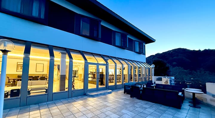 โรงแรมรีสอร์ทแบบเช่าเหมาสำหรับ 46 คน ริมทะเล 10 ห้อง ซาวน่า คาราโอเกะ ลูกดอกสำหรับทริปปิดท้ายการเรียนรู้ สำหรับพนักงานทริป MFR อิเซะชิมะ ห้องโถงใหญ่