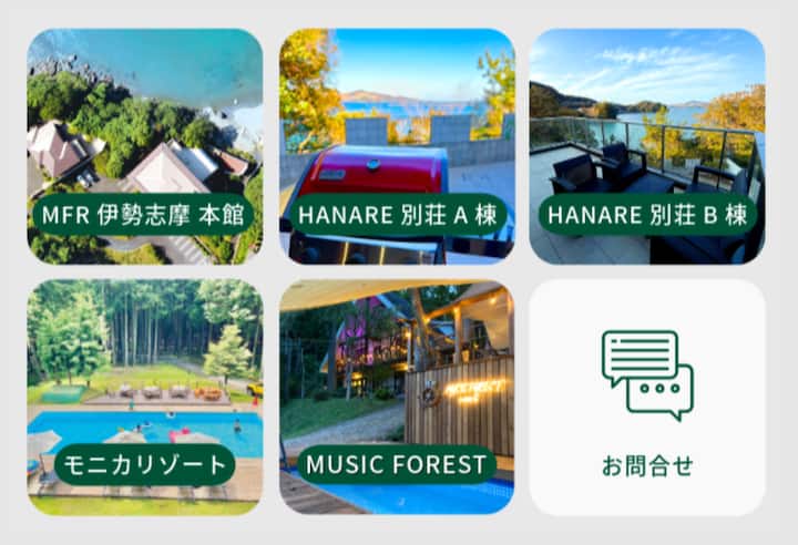 MFR Resort Group ให้เช่าที่พักในภูมิภาคคินกิโรงแรมรีสอร์ทส่วนตัวโบสถ์ร้านกาแฟและอีกมากมาย