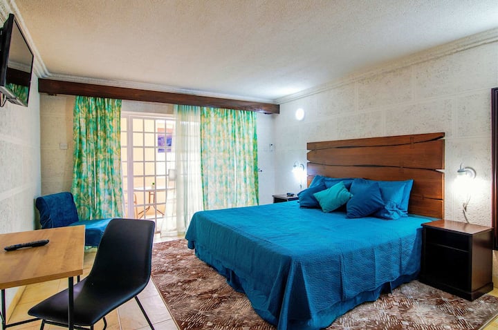 นี่เป็นหนึ่งในที่พักไม่กี่แห่งของย่านนี้ที่มีสระว่ายน้ำ