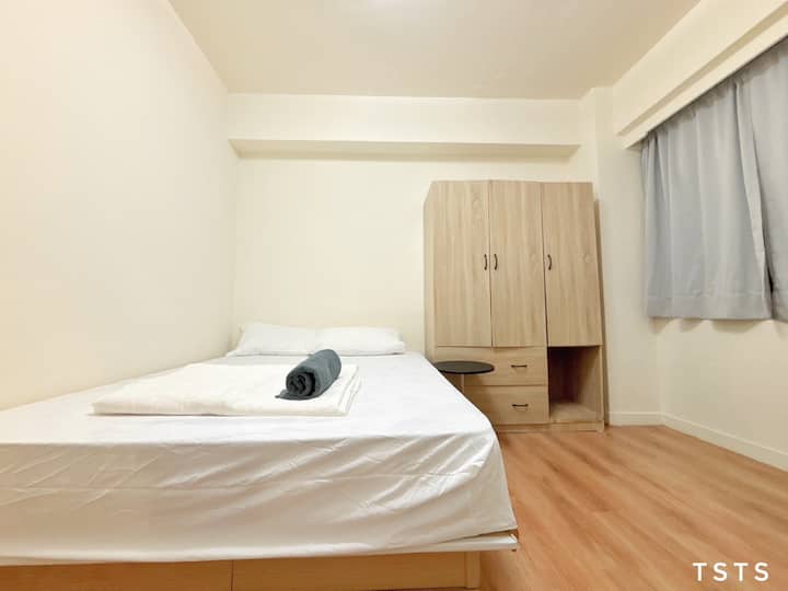 ห้องเตียงคู่ (ใช้ห้องน้ำร่วมกับห้องเตียงเดี่ยว) ใกล้สถานีมหาวิทยาลัยศึกษาศาสตร์ มหาวิทยาลัยไทเป และอาคารไทเปไฟฟ้า ระเบียงห้องนั่งเล่นขนาดใหญ่