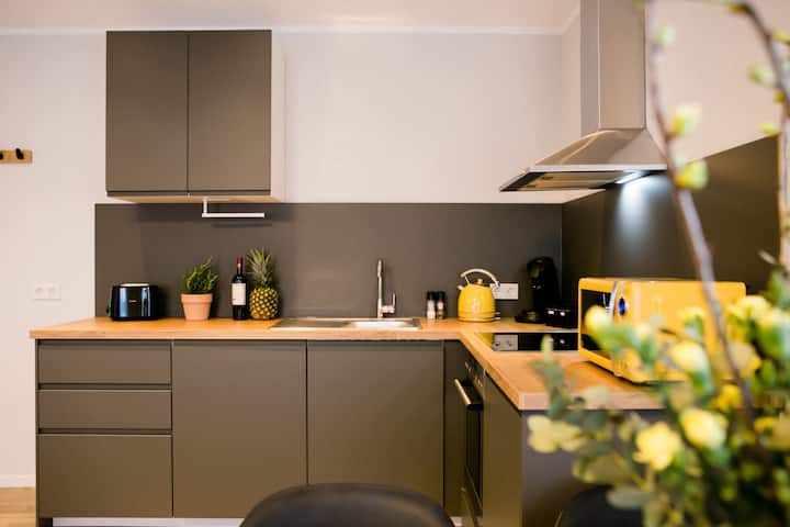 bonquartier | LUX APT #2 NEU - ห้องครัว/เครื่องปรับอากาศ/ที่จอดรถ