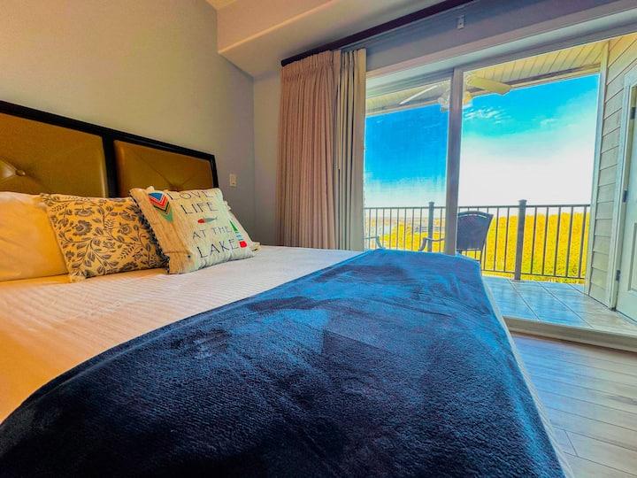 เตียงควีนไซส์ 2 เตียงห้องน้ำในตัวระเบียงริมทะเลสาบฝักบัวอาบน้ำแบบวอล์คอินอ่างน้ำวนสระว่ายน้ำบาร์กาแฟ - นอนได้ 4 คน