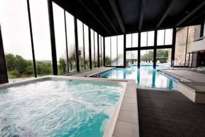 มีสระว่ายน้ำในร่มและอ่างน้ำร้อนให้ใช้ตลอดทั้งปี สิ่งอำนวยความสะดวกเหล่านี้อยู่ภายใต้กฎของชุมชนและอาจถูกปิดชั่วคราวสำหรับการบำรุงรักษา