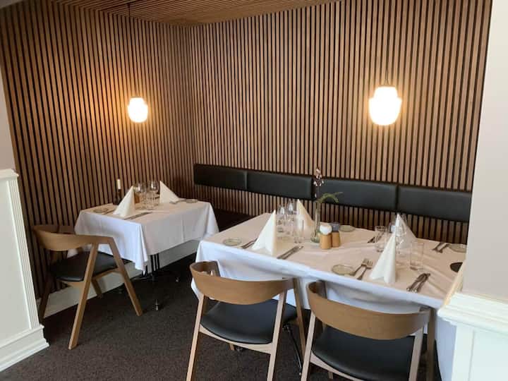 Diagonalkroen is a charming inn located at Torvet 1 in the heart of Give. With its 14 newly decorated rooms, the inn offers an authentic and modern experience for its guests. Each room is designed with a focus on comfort and coziness, ensuring a relaxing stay. In the inn's restaurant, run by Lindberg Dining, guests can enjoy a varied menu ranging from classic crown dishes such as wienerschnitzel and fried plaice to delicious steakhouse specialties. The chef also makes sure there are tasty dishes for the younger guests. After dinner you can relax in the cozy bar where a selection of drinks is served in a relaxed atmosphere. For golf enthusiasts, Diagonalkroen is ideally located with easy access to several golf courses, including Give Golf Club, just 3 km away. The inn's central location also makes it easy to explore nearby cities such as Herning, Billund and Vejle. Whether you're planning a romantic weekend, a golf outing with friends or a family vacation, Diagonalkroen offers a memorable experience with a focus on hospitality, comfort and culinary delights.A refundable deposit might be charged closer to your check-in date. The security deposit ensures a smooth stay and covers any additional services or consumption charges.This deposit covers utilities consumed during your stay and any additional services that may be taken.The final amount will be adjusted based on actual meter readings, actual usage of extra services, and any remaining balance will be refunded within 21 days after checkout.This deposit simply acts as a prepayment for charges that you would anyways pay for, ensuring a seamless stay and check-out experience.