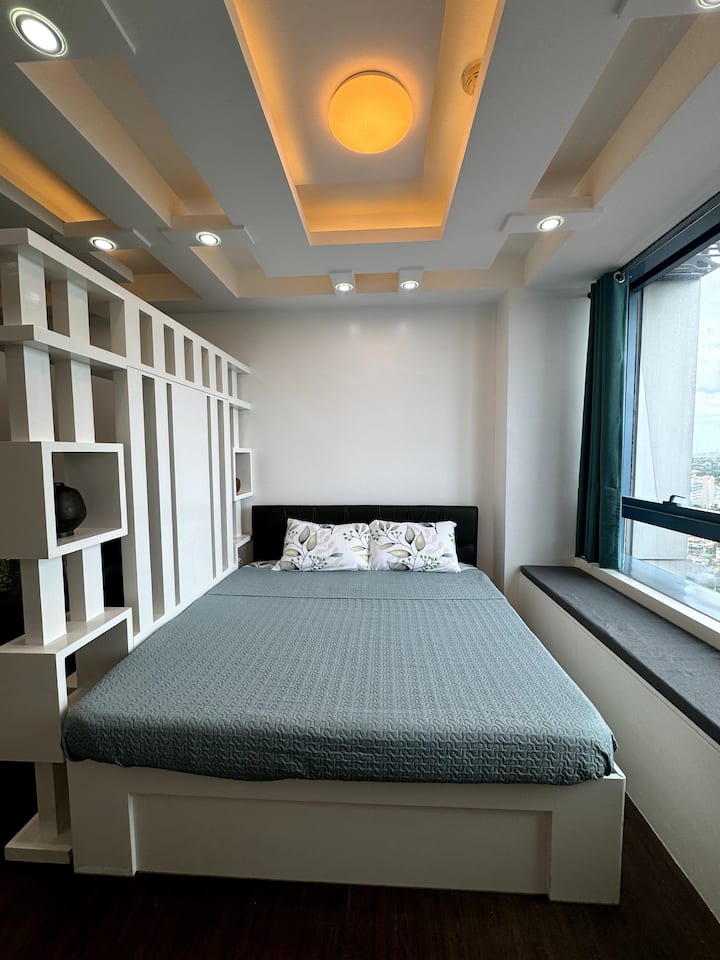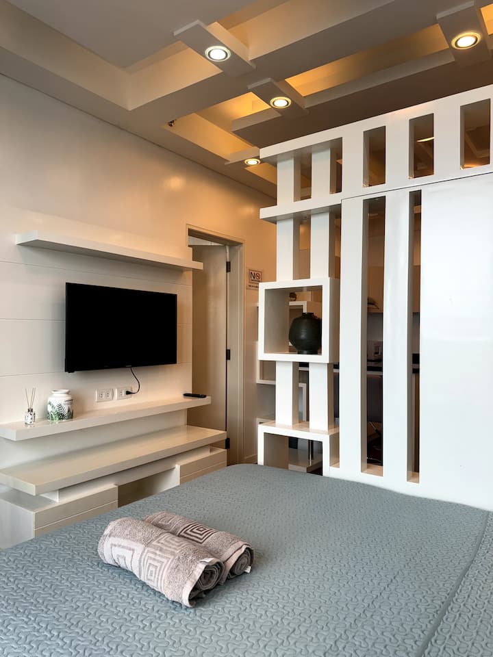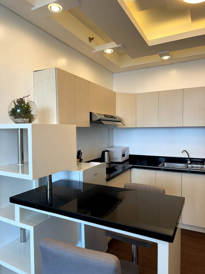 ห้องชุดคอนโดมิเนียมขนาด 45 ตารางเมตรที่ออกแบบมาอย่างมืออาชีพใน Filinvest City, Alabang มีเฟอร์นิเจอร์ระดับไฮเอนด์เครื่องใช้ไฟฟ้าระดับพรีเมียมและสิ่งอำนวยความสะดวกชั้นยอดเพื่อการเข้าพักที่สะดวกสบายและหรูหรา
