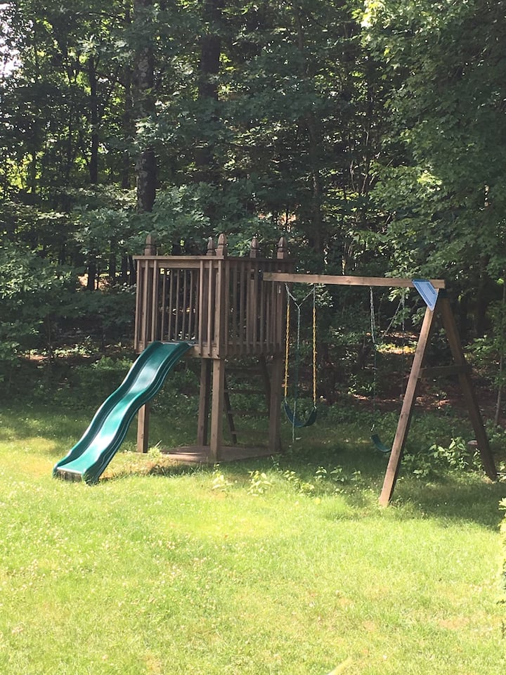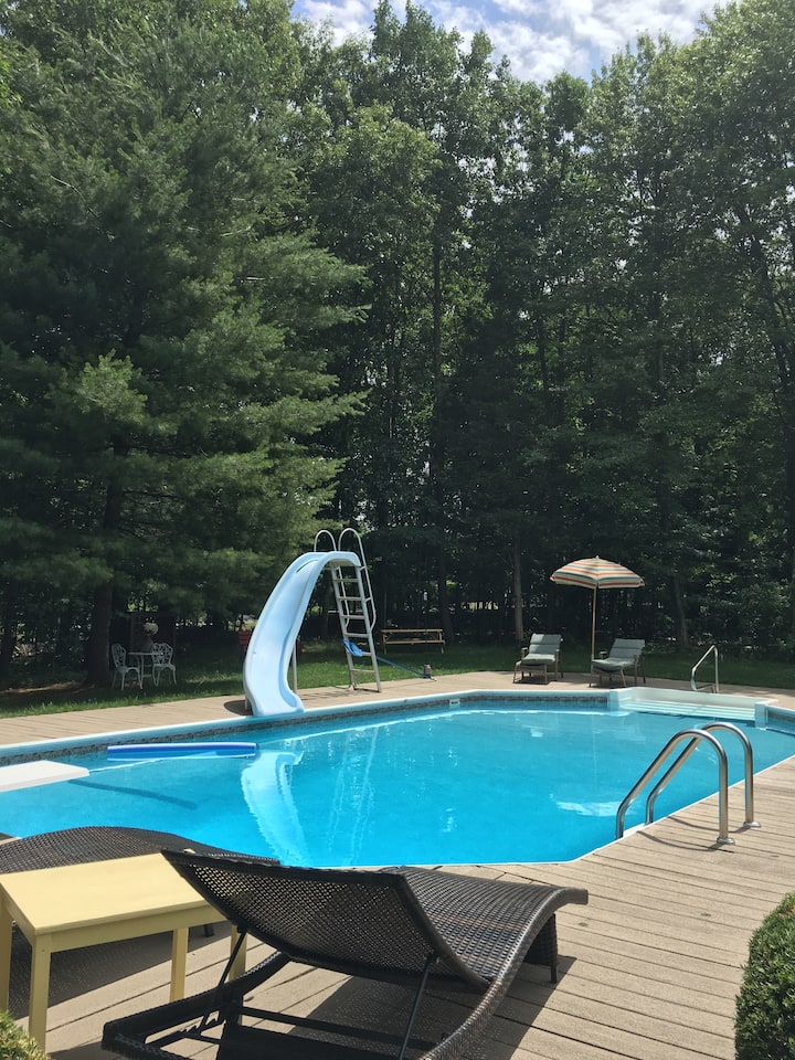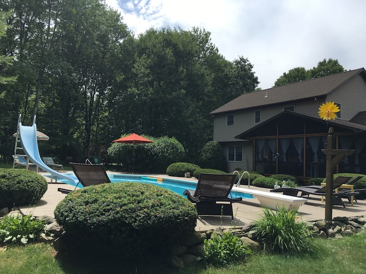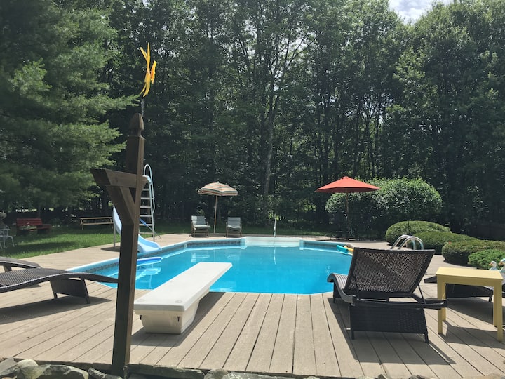 บ้าน 3 ห้องนอนที่มีเสน่ห์ท่ามกลางธรรมชาติพร้อมสระว่ายน้ำขนาดใหญ่และสนามหลังบ้าน ใกล้กับ Mt. Pocono แหล่งช้อปปิ้งและเส้นทางเดินป่า