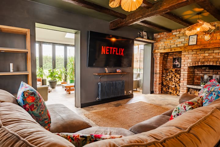 ฟาร์มเฮ้าส์ขนาดใหญ่พร้อมสระว่ายน้ำอุ่นใกล้เชสเตอร์/ที่จอดรถ