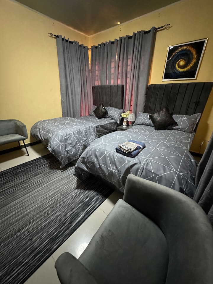 หลบหนีไปยังสถานที่พักผ่อนลูซากา 2 ห้องนอนที่เงียบสงบของเราซึ่งตั้งอยู่ใกล้กับสถานทูต เพลิดเพลินกับความสะดวกสบายอย่างต่อเนื่องด้วยพลังงานแสงอาทิตย์ที่เชื่อถือได้ทำให้มั่นใจได้ว่าจะไม่มีไฟดับ ความปลอดภัยของคุณเป็นสิ่งสำคัญที่สุดโดยมีเจ้าหน้าที่รักษาความปลอดภัยและพนักงานที่ให้ความช่วยเหลือในที่พัก ผ่อนคลายและผ่อนคลายในสภาพแวดล้อมที่ปลอดภัยและเงียบสงบ เหมาะสำหรับการเข้าพักที่ปราศจากความเครียด