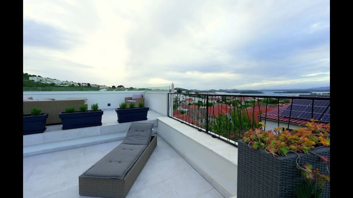 - บ้านพักตากอากาศที่มีที่นั่งกลางแจ้งใน จังหวัดชิเบนิก-ค닌