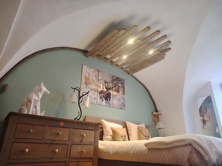ที่นี่คุณจะพบ 🪹 ที่แท้จริงในบรรยากาศที่เงียบสงบหลังจากวันที่วุ่นวายบน 🏔️ ในทำเลที่ไม่ธรรมดา: สตูดิโอที่มีเพดานโค้งสูงสร้างขึ้นในปี 1819!