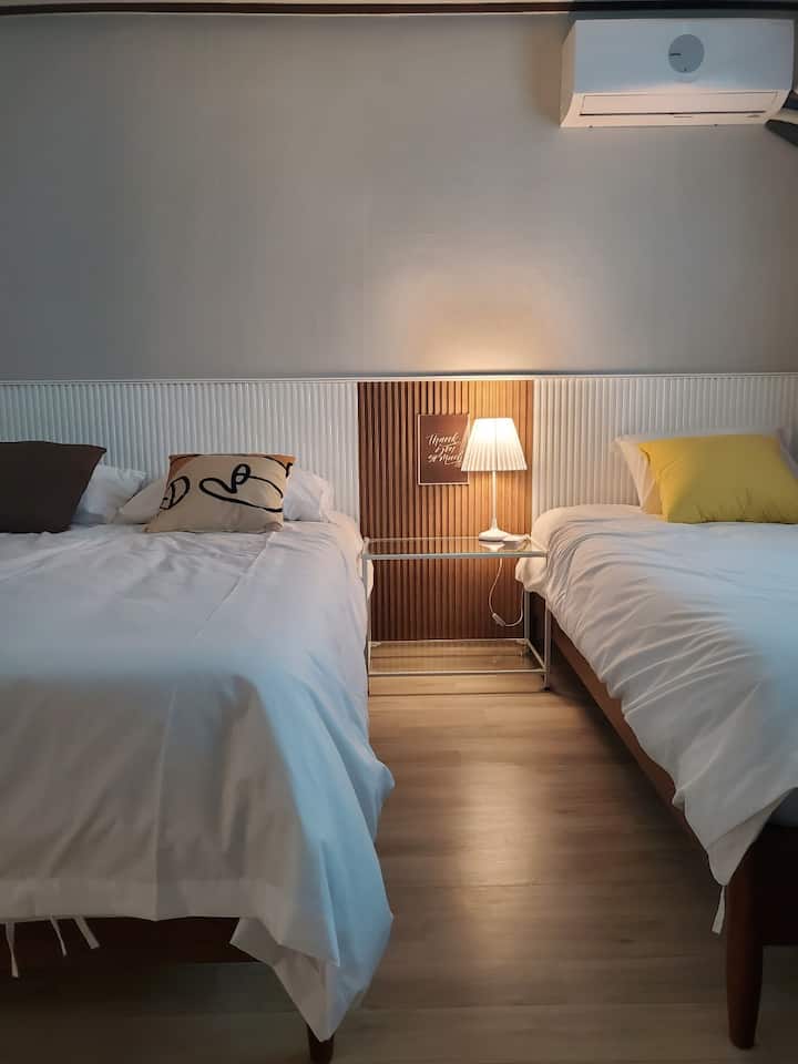✅ ห้อง 1: เตียงควีนไซส์ (2 คน) เตียงเดี่ยวสุดๆ (1 คน) เครื่องปรับอากาศที่แขวนเสื้อผ้าขาตั้งยากันยุงอิเล็กทรอนิกส์
