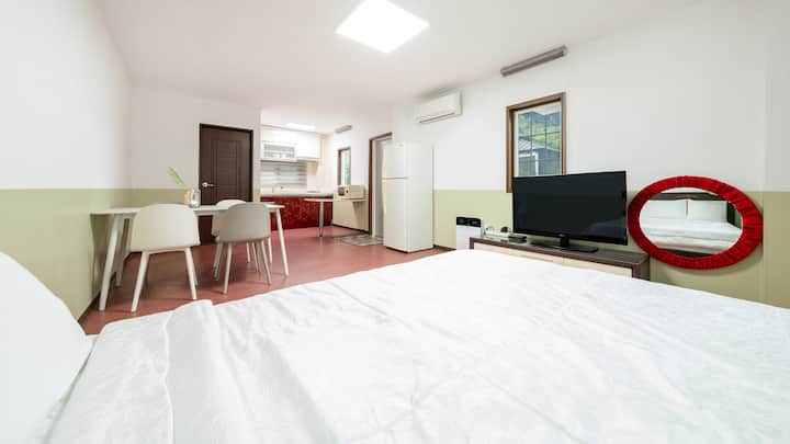 ประเภทห้องเดียว ห้องนอน (เตียงคู่ 1 เตียง) + ห้องครัว 1 ห้อง + ห้องน้ำ 1 ห้อง + เตาบาร์บีคิวส่วนตัว
