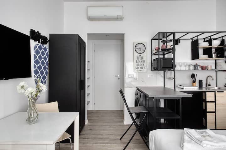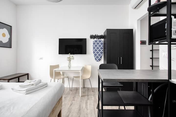 สตูดิโอสไตล์มินิมอลในมิลาน ใกล้สถานีรถไฟใต้ดิน