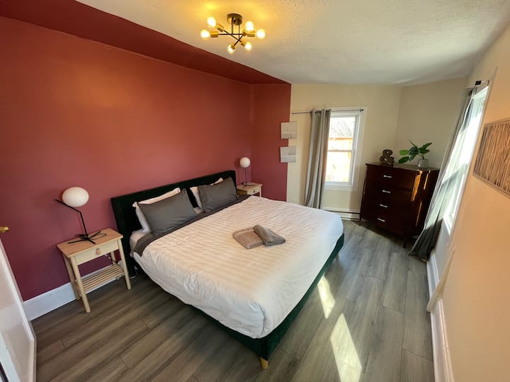 อพาร์ทเมนท์ 2 ห้องนอนที่น่าอยู่ของเราตั้งอยู่ใจกลางแฮลิแฟกซ์มีการผสมผสานที่สมบูรณ์แบบของความสะดวกสบายและความสะดวกสบายสำหรับผู้ที่สำรวจเมือง ตั้งแต่ก้าวเข้ามาคุณจะได้รับการต้อนรับด้วยที่พักที่อบอุ่นและได้รับการออกแบบอย่างพิถีพิถันให้ความรู้สึกเหมือนอยู่บ้าน พื้นที่นั่งเล่นที่มีที่นั่งหรูหราและการตกแต่งอย่างมีรสนิยมชวนให้คุณผ่อนคลายหลังจากผจญภัยมาทั้งวัน ห้องนอนใหญ่มีเตียงคิงไซส์ที่สะดวกสบายเป็นพิเศษ ทำให้มั่นใจได้ว่าจะนอนหลับสบายตลอดคืน ในขณะที่ห้องนอนที่ 2 มีเตียงสองชั้น (ขนาดควีนไซส์ด้านล่าง) ทำให้เป็นตัวเลือกที่เหมาะสำหรับครอบครัวหรือกลุ่มเล็กๆ