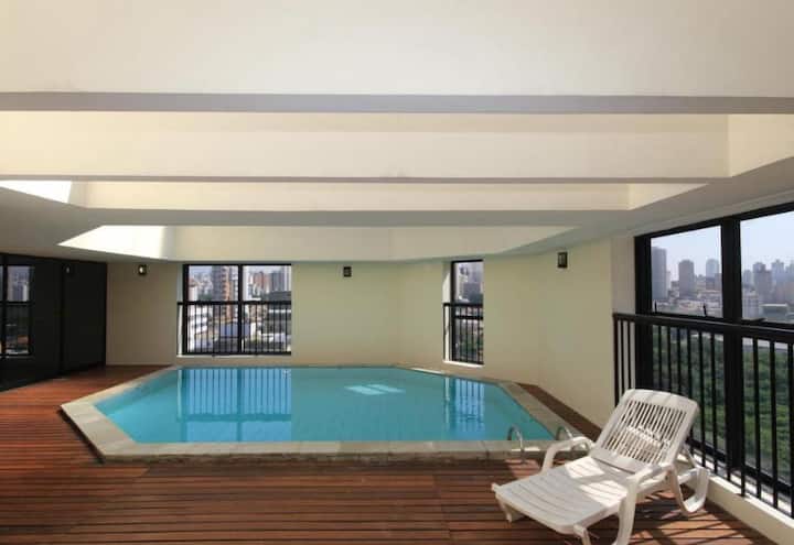 นี่เป็นหนึ่งในที่พักไม่กี่แห่งของย่านนี้ที่มีสระว่ายน้ำ