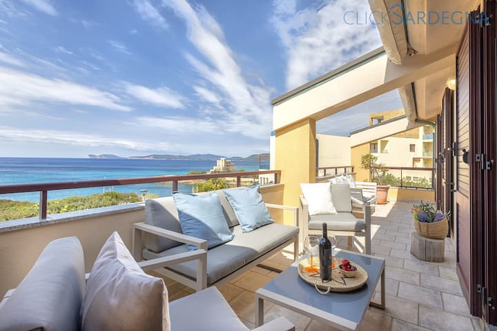 เพนท์เฮาส์พร้อมระเบียงหันหน้าไปทางทะเลที่จอดรถ