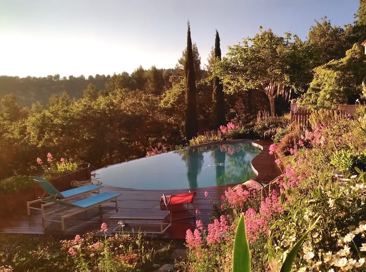 คอทเทจพร้อมเครื่องปรับอากาศและสระว่ายน้ำท่ามกลางธรรมชาติ