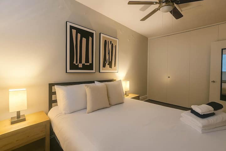 อพาร์ทเมนท์ 1 ห้องนอนที่มีชีวิตชีวาและตกแต่งครบครัน
