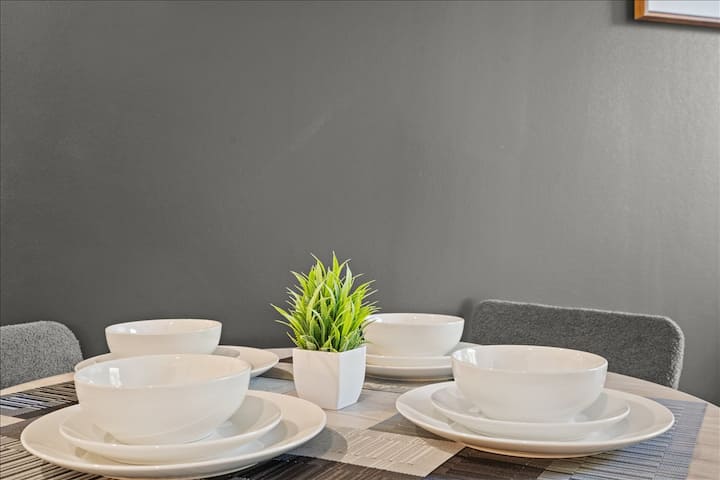 เข้าพักอย่างมีสไตล์ในเมืองที่แปลกใหม่ซึ่งเป็นที่ตั้งของศูนย์กลางการธนาคารที่ใหญ่เป็นอันดับ 2 ในสหรัฐอเมริกา - ชาร์ลอตต์! อพาร์ทเมนท์ 2 ห้องนอนและ 1 ห้องน้ำมีระดับนี้มีขนาด 576 ตารางฟุต (~ 53.51 ตารางเมตร) มีเตียงคิงไซส์ 1 เตียงและเตียงใหญ่หรูหรา 2 เตียงเพื่อความสะดวกสบายของคุณ Wi-Fi เร็วดุจสายฟ้าโซฟาปรับนอนได้ห้องครัวที่มีอุปกรณ์ครบครันและสิ่งอำนวยความสะดวกหรูหราอื่นๆที่ออกแบบมาเป็นพิเศษสำหรับการเข้าพักระยะยาวของคุณ! ก้าวออกไปยังย่านที่มีชีวิตชีวาห่างจาก SouthPark Mall เพียงไม่กี่นาทีจากร้านอาหารคาเฟ่บาร์และร้านค้า!