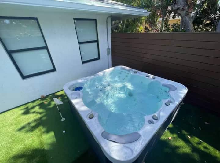 🛀 ก้าวออกไปข้างนอกเพื่อผ่อนคลายในอ่างน้ำร้อนส่วนตัวและเพลิดเพลินกับลานสำหรับรับประทานอาหารและพักผ่อนกลางแจ้ง