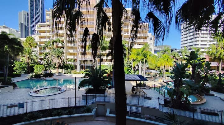 นี่เป็นหนึ่งในที่พักไม่กี่แห่งของย่านนี้ที่มีสระว่ายน้ำ