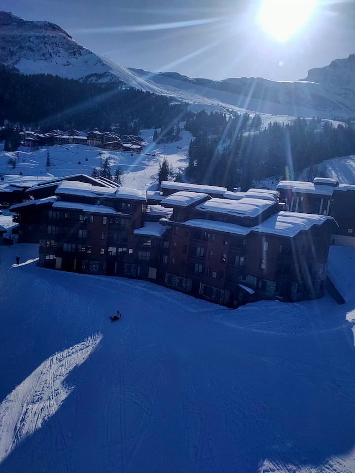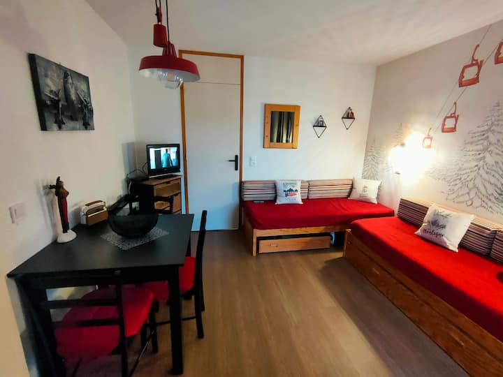 สตูดิโอที่สวยงามพร้อมทางเข้าสู่ลานสกีโดยตรงและเตียง 3 เตียง