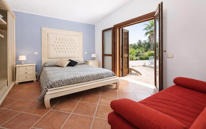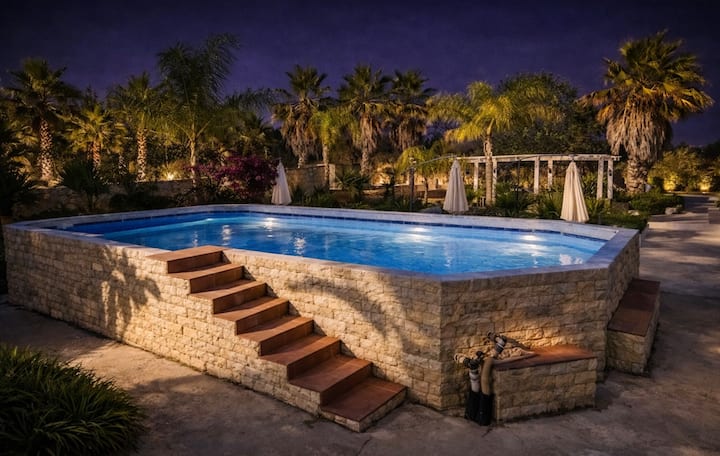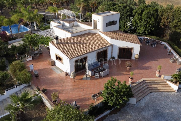 เราจัดการพาล์มพาร์คทราปานี วิลล่าที่มีสระว่ายน้ำและที่จอดรถที่ล้อมรอบด้วยต้นไม้เขียวขจี ห่างจากทะเลทราปานีเพียงไม่กี่นาที
