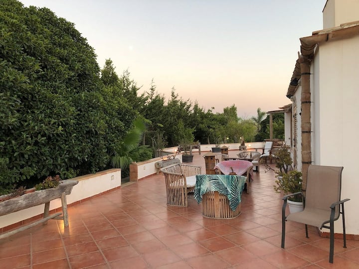 - บ้านพักตากอากาศที่มีที่นั่งกลางแจ้งใน ซิซิลี