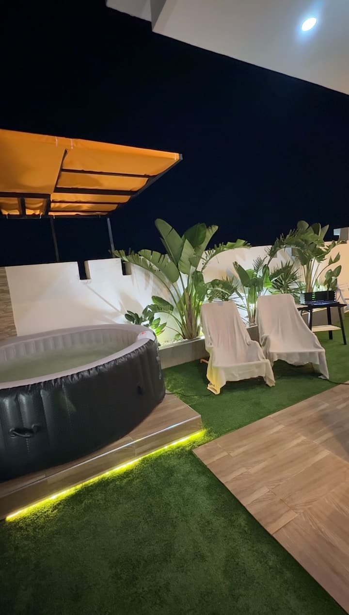 ผ่อนคลายไปกับที่อาบน้ำฝักบัวกลางแจ้งและจากุซซี