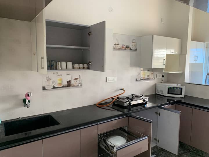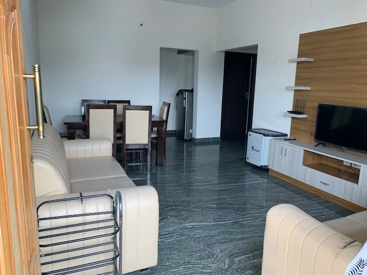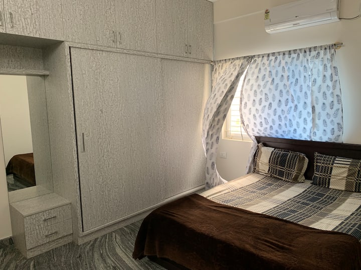 แฟลต 2 ห้องนอนและห้องนั่งเล่น พร้อมเครื่องปรับอากาศ ใกล้ NH และ Biocon