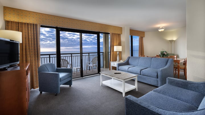 มองหาที่พักตากอากาศริมทะเลที่เหมาะสำหรับครอบครัวในนอร์ทเมอร์เทิลบีชอยู่ใช่ไหม? คอนโด 2 ห้องนอนของเราที่บีชโคฟรีสอร์ทได้รับการออกแบบโดยคำนึงถึงความสะดวกสบายและความสะดวกสบาย