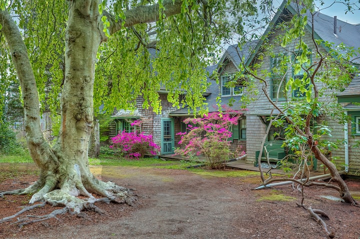ก้าวเข้าสู่ประวัติศาสตร์ของเคปค้อดที่ Bentwood by the Sea ซึ่งเป็นที่ดินริมทะเลขนาดใหญ่ในปี 1902 ตั้งอยู่บนพื้นที่ส่วนตัวหกเอเคอร์ที่เต็มไปด้วยต้นไม้ตามแนวคาบสมุทรวิงส์เน็ค ที่พัก 9 ห้องนอนที่ออกแบบโดยสถาปนิกจอห์น ลาวาเลียร์ มีชายหาดส่วนตัวยาว 250 ฟุตและวิวอันกว้างไกลของอ่าวบัซซาร์ด