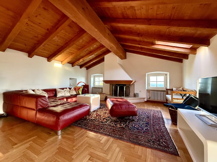จุดเด่นที่แท้จริงคือห้องนั่งเล่นที่กว้างขวาง (ประมาณ 39 ม.²): มีโต๊ะรับประทานอาหารขนาดใหญ่พร้อมเก้าอี้หกตัว พื้นที่โซฟาที่สะดวกสบาย โทรทัศน์ และวิวที่สวยงามเหนือทะเลสาบและชนบทโดยรอบ – ในวันที่ท้องฟ้าแจ่มใส จะมองเห็นไปถึงเวโรนา หน้าต่าง 6 บานและช่องแสงส่องลงจากดาดฟ้าที่ควบคุมด้วยรีโมท 2 ช่องช่วยให้บรรยากาศในห้องนั่งเล่นดูโปร่งโล่ง