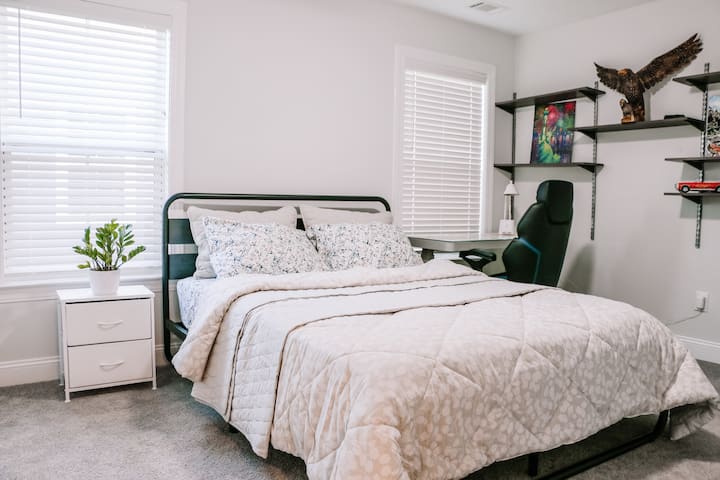 🏡 บ้านดีไซน์เนอร์ใหม่เอี่ยม 4 ห้องนอน 3.5 ห้องน้ำ ผสมผสานสไตล์ที่สง่างาม การตกแต่งระดับไฮเอนด์ และเทคโนโลยีอัจฉริยะ บ้านหลังนี้ตั้งอยู่ในย่านที่เงียบสงบและปลอดภัยใกล้สนามบิน GSP, BMW และตัวเมือง Greenville และ Spartanburg มีลักษณะการออกแบบแบบเปิดโล่งโปร่งสบาย เฟอร์นิเจอร์เก๋ไก๋ ครัวพร้อมสำหรับเชฟ ทีวีจอใหญ่ 100 นิ้ว ห้องนันทนาการ ตู้ปลาสด และสนามหลังบ้านพร้อมเตาผิงและเตาปิ้งย่าง เหมาะสำหรับครอบครัว เพื่อน หรือผู้ที่เดินทางเพื่อธุรกิจที่มองหาสไตล์ ความสนุกสนาน และความสะดวกสบายที่ทันสมัย ทั้งหมดนี้ในบ้านหลังที่สองที่อบอุ่นเป็นกันเอง