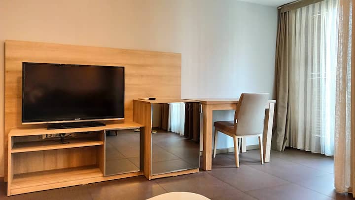 อพาร์ทเมนท์ที่มีสไตล์และเงียบสงบแห่งนี้เชิญคุณออกจากวันที่ตึงเครียดอยู่ท่ามกลางความสะดวกสบาย เตียงนุ่มๆของคุณพร้อมแล้วคุณสามารถจิบกาแฟและเพลิดเพลินไปกับเมืองริมหน้าต่างได้