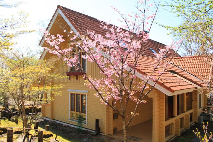 บ้านไม้สไตล์ยุโรปหรูหราที่ตีนเขาไฟฟูจิที่จะทำให้คุณรู้สึกอบอุ่นและผ่อนคลายไปกับธรรมชาติ ห้อง 202