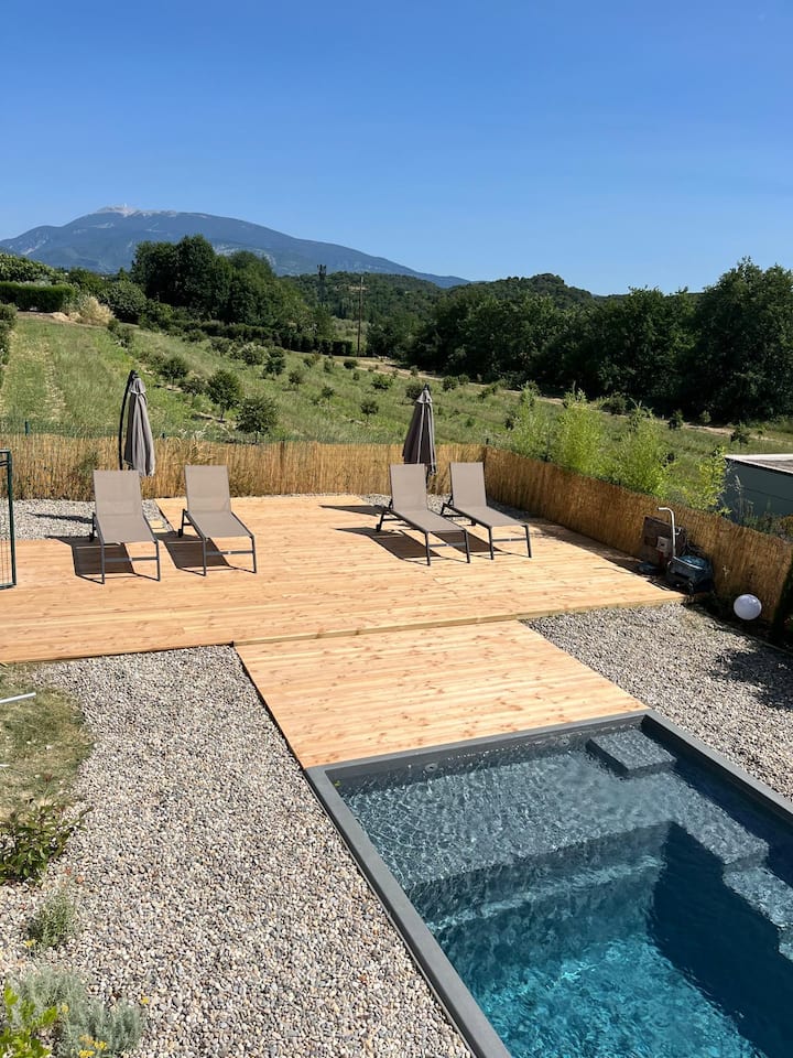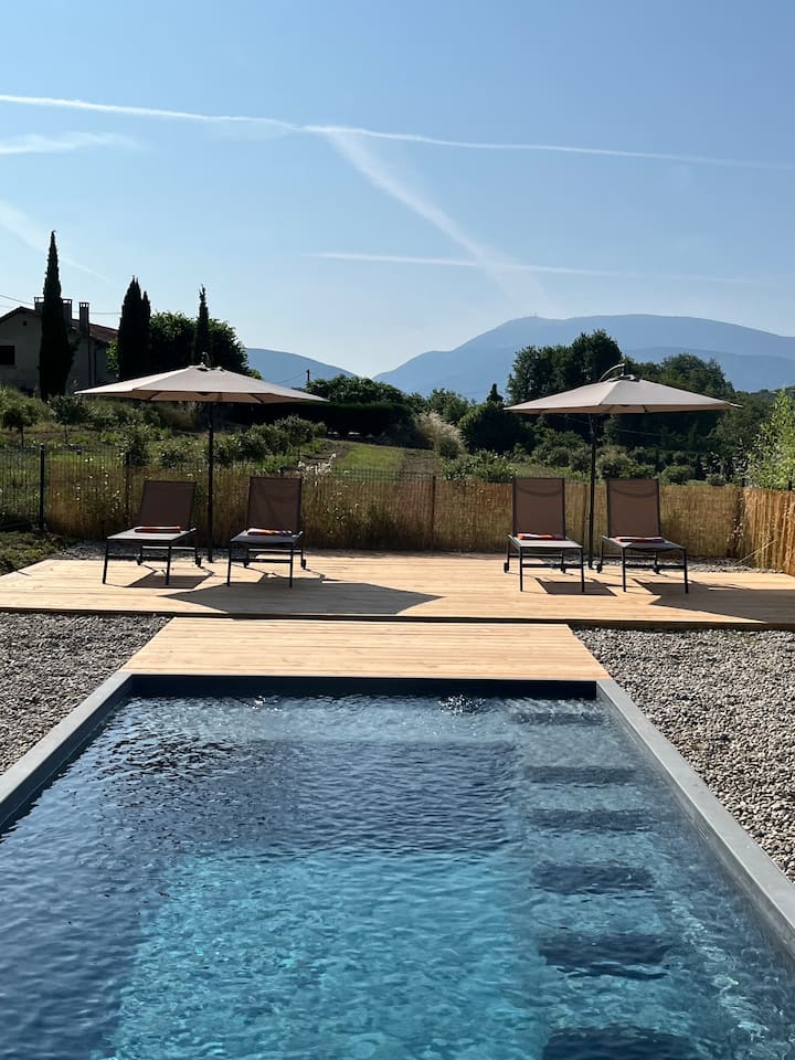 พักผ่อนริมสระว่ายน้ำส่วนตัวที่น่ารัก พร้อมชมทิวทัศน์ของภูเขาแวนตูที่น่าประทับใจ ภูเขาชื่อดังอยู่ใกล้ๆ – ความฝันของนักปั่นจักรยานและนักเดินป่า