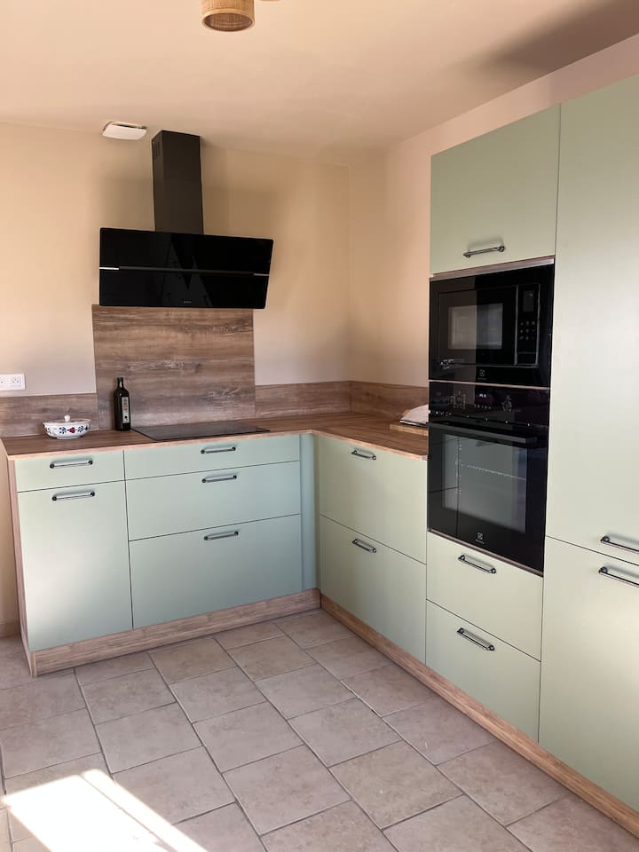 • ครัวแบบเปิดโล่งที่ใหม่และทันสมัย มีอุปกรณ์ครบครัน: