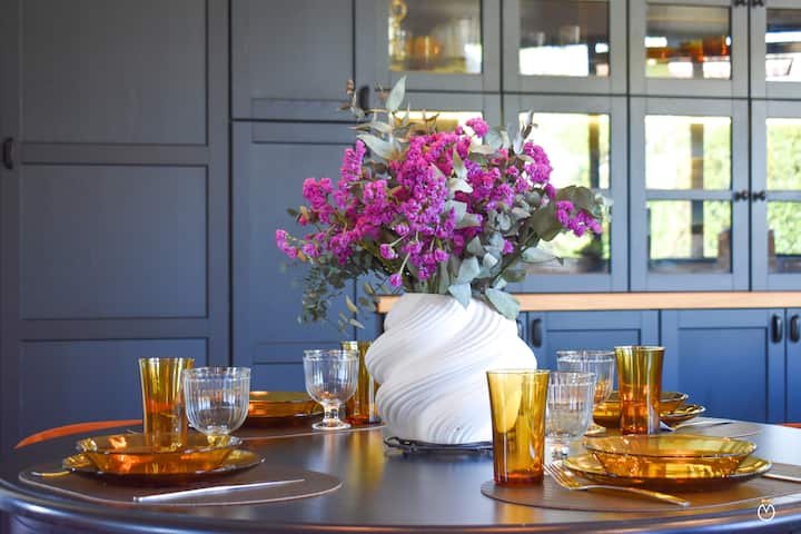 ตั้งแต่ที่คุณมาถึง คุณจะถูกดึงดูดด้วยสนามดอกไม้และระเบียงที่มีโซฟาสวนและร่มติดตั้งอยู่ใกล้กับซุ้มที่ปกคลุมไปด้วยวิสทีเรียในฤดูใบไม้ผลิ เสน่ห์ที่มีตัวต่อไปตามผนังด้านข้างของบ้าน ซึ่งมีกุหลาบปีนไต่ที่สวยงาม ภายในการตกแต่งเรียบร้อยและทุกรายละเอียดได้รับการออกแบบมาเพื่อให้คุณรู้สึกดี