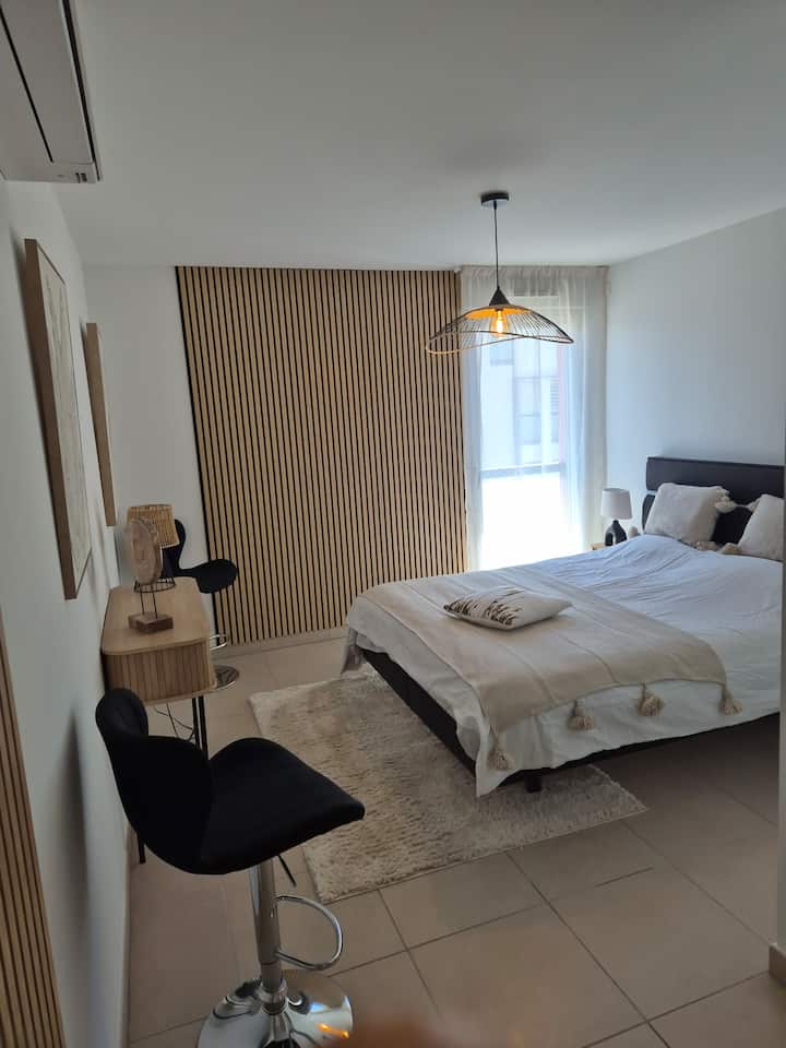 อพาร์ทเมนท์ขนาด 59 ตร.ม. นี้มีเอกลักษณ์เฉพาะตัว: สำหรับระเบียงขนาด 23 ตร.ม. ที่มีวิวที่งดงามและน่าทึ่งของท่าเรือ Fréjus 2, Esterel และ Fréjus เก่า; สำหรับทำเลใจกลางเมืองที่ช่วยให้คุณสามารถเดินไปยังชายหาด ท่าเรือ และใจกลางเมือง; สำหรับด้านการใช้งานที่มีประโยชน์ด้วยโรงจอดรถในชั้นใต้ดิน ลิฟต์ ความใกล้ชิดกับร้านค้า; สำหรับคุณภาพของบริการด้วยชัตเตอร์ไฟฟ้า เครื่องปรับอากาศ Wi-Fi...; สำหรับด้านที่สงบ ปลอดภัย และสง่างาม