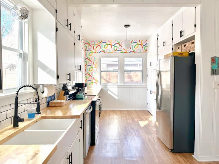 สีสันสดใสและอบอุ่น 4 ห้องนอน/2 ห้องน้ำ ใกล้ KSU เหมาะสำหรับครอบครัวและกลุ่ม