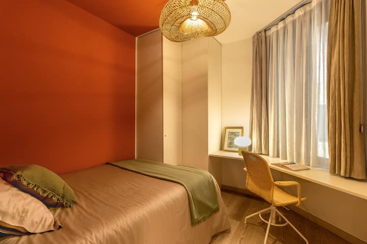 เมื่อหันไปทางซ้ายในโถงทางเดินจะอยู่ทางขวาของตู้ที่มีเครื่องซักผ้าและเครื่องอบผ้า ด้านซ้ายคุณสามารถเข้าถึงห้องนอนขนาดเล็กและยังทาสีด้วยรายละเอียดดินเผาซึ่งรวมถึงมุมการศึกษาที่สะดวกสบายเหมาะสำหรับการทำงานหรือการเรียนอย่างสงบ