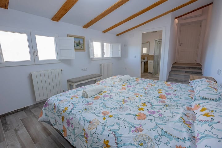 ห้องบูฮาร์ดิลาแบบซูพีเรียร์ (ห้องพักที่มีช่องระบายอากาศ 4 ช่อง): ประเภทห้องลอฟท์ ซึ่งมีเตียงเดี่ยว 5 เตียง (0.90x2.00 ม.) พร้อมห้องครัวและห้องน้ำของตัวเอง หน้าต่างที่มองเห็นวิวทิวทัศน์ที่สวยงามของเซียร์ราและเดลวัลเล่และเมือง มีประตูที่มีกะกุญแจแยกจากส่วนที่เหลือของบ้านในกรณีที่ต้องการแยกต่างหาก ราคา: €200